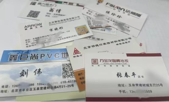 首先,调研人员来到基础建材城,对卫生间门、隔断、地板、吊顶等材料与多户商家进行详细沟通。热情的商家认真讲解了不同厂家、不同档次和不同材质的建筑材料,并留下联系方式,建立了沟通渠道,便于准确把握项目价格。
